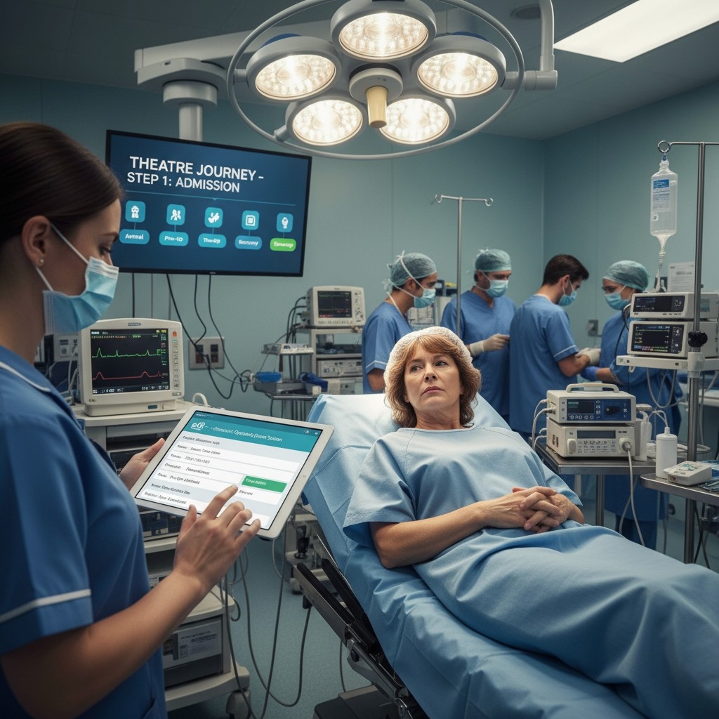 The patient’s surgical workflow is managed entirely through eOR, from scheduling to theatre to recovery.